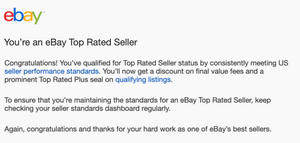 After operating about 7 weeks on eBay, we've achieved Top Seller status for 100% positive feedback and 100% on time shipping!!! Looking forward to ... -