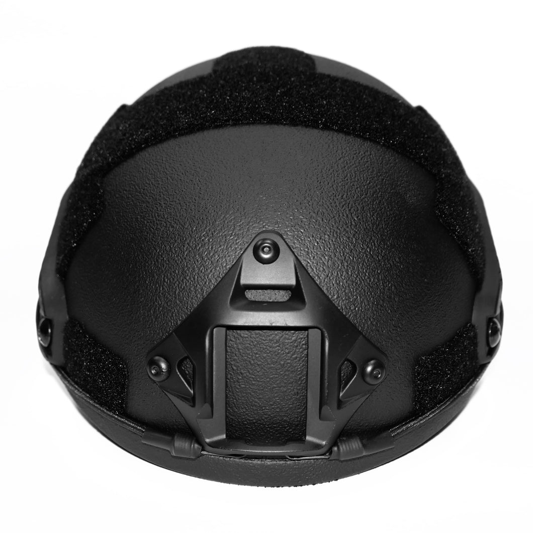 Hudi's Tactical Level IIIA Ballistic Helmet weighs in at 3.3 pounds. It has a high cut style, leaving room for communication equipment or hearing protection. Additionally, the rail system allows you to add accessories such as lights, camera, night vision equipment, flashlight, etc. The helmet is made from high strength aramid fibers and is designed to stop .357 Sig and .44Mag.